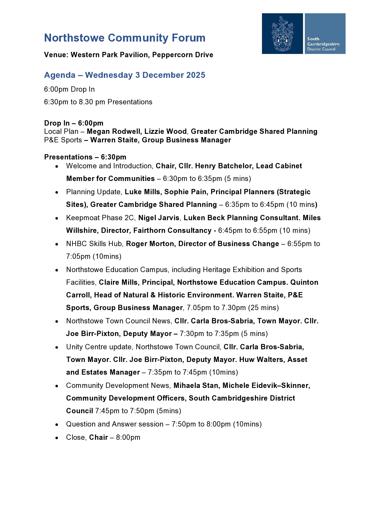 Planning Update – Luke Mills & Sophie Pain, Principal Planners, Strategic Sites, Greater Cambridge Shared Planning.